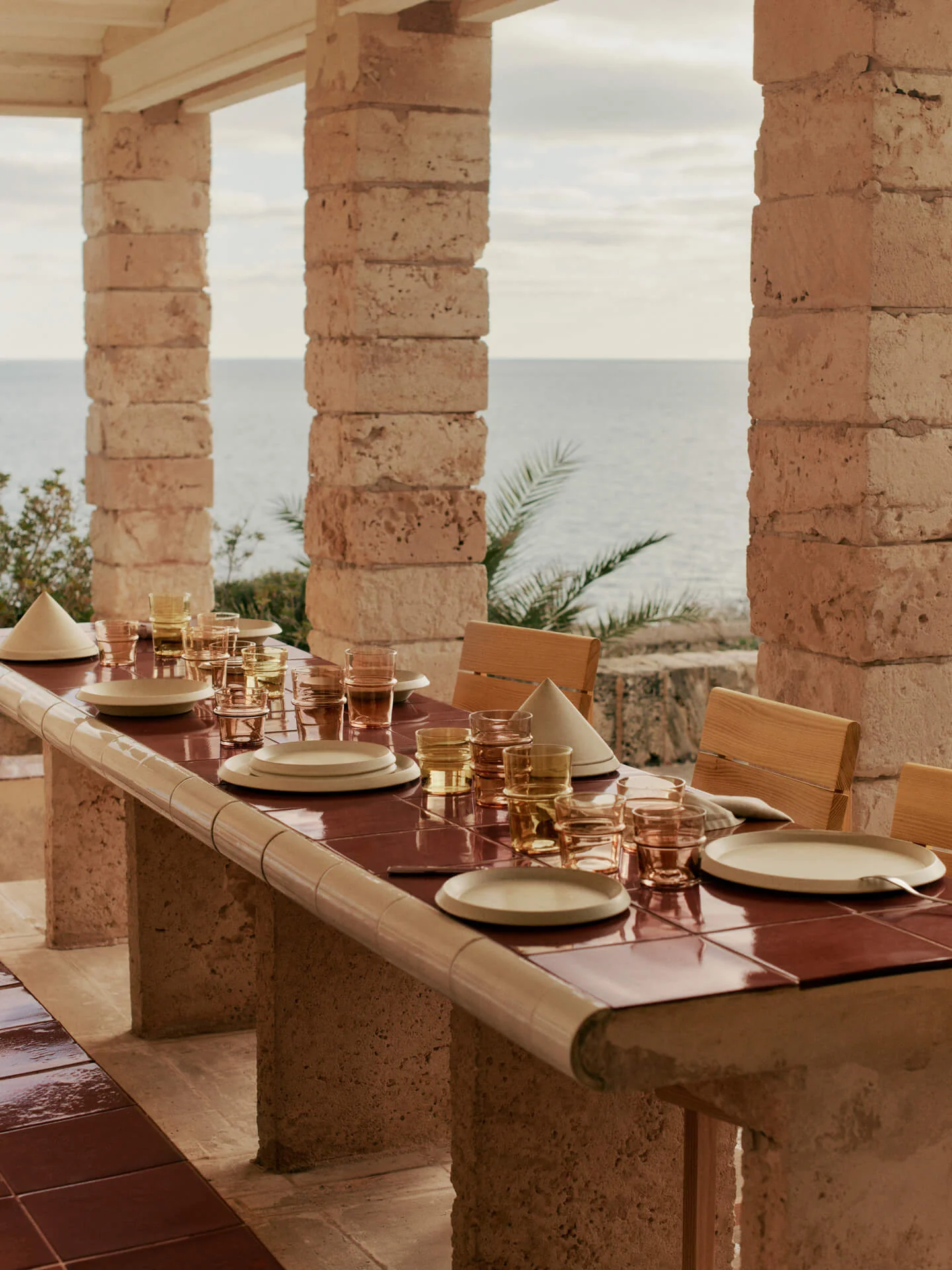 The Boya Low Glasses draw inspiration from buoys and ancient Mediterranean glassware. Named after the Spanish word for ‘buoy,’ their playful shape adds charm to any setting. Sold as a set of two, each mouth-blown solid-coloured glass carries a unique artisanal character. Their warm, vibrant hues evoke the spirit of summer, while their stackable design ensures practicality and easy storage.