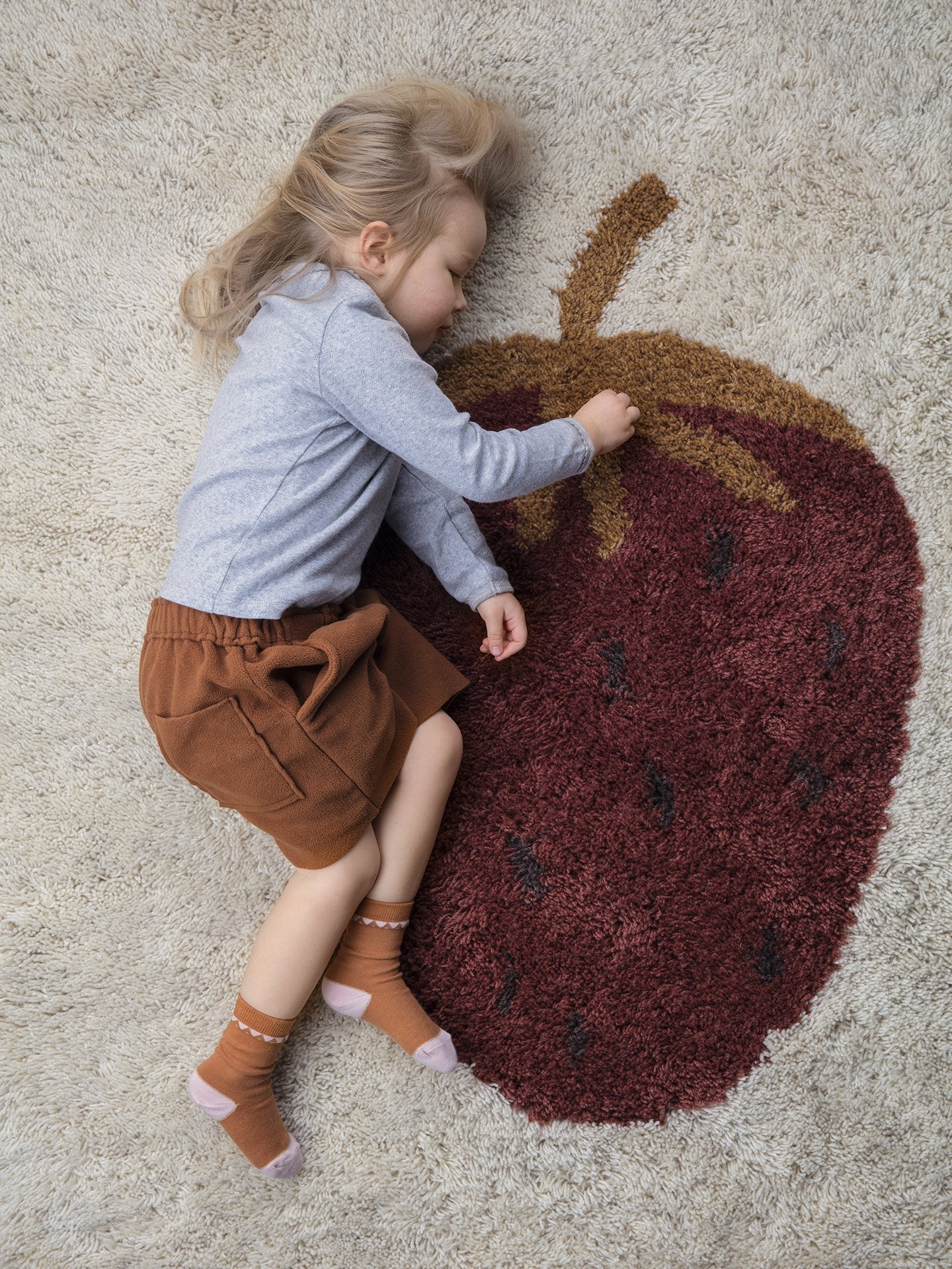 Using the tufting technique and New Zealand wool, this new Strawberry Rug in the Fruiticana series is softer than any with its higher pile and thick weave. The strawberry motif is woven into the rug, and the softness of the lovely rug makes you think of sand beaches, walking bare feet along the shoreline of a tropical island.